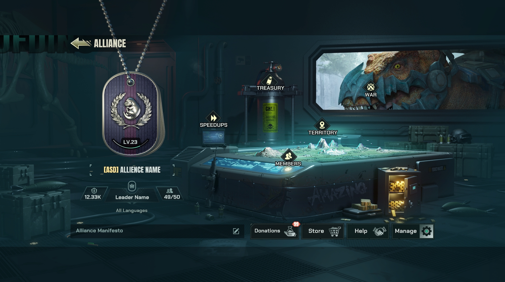 Players can choose to develop on their own, through upgrading the base, mining resources, fighting enemies in the wilderness, and earning rewards. They can also ally with like-minded players. The alliance can provide players with protection and resources, and fight against evil GeneSys companies and other players together in various game events and battle modes.